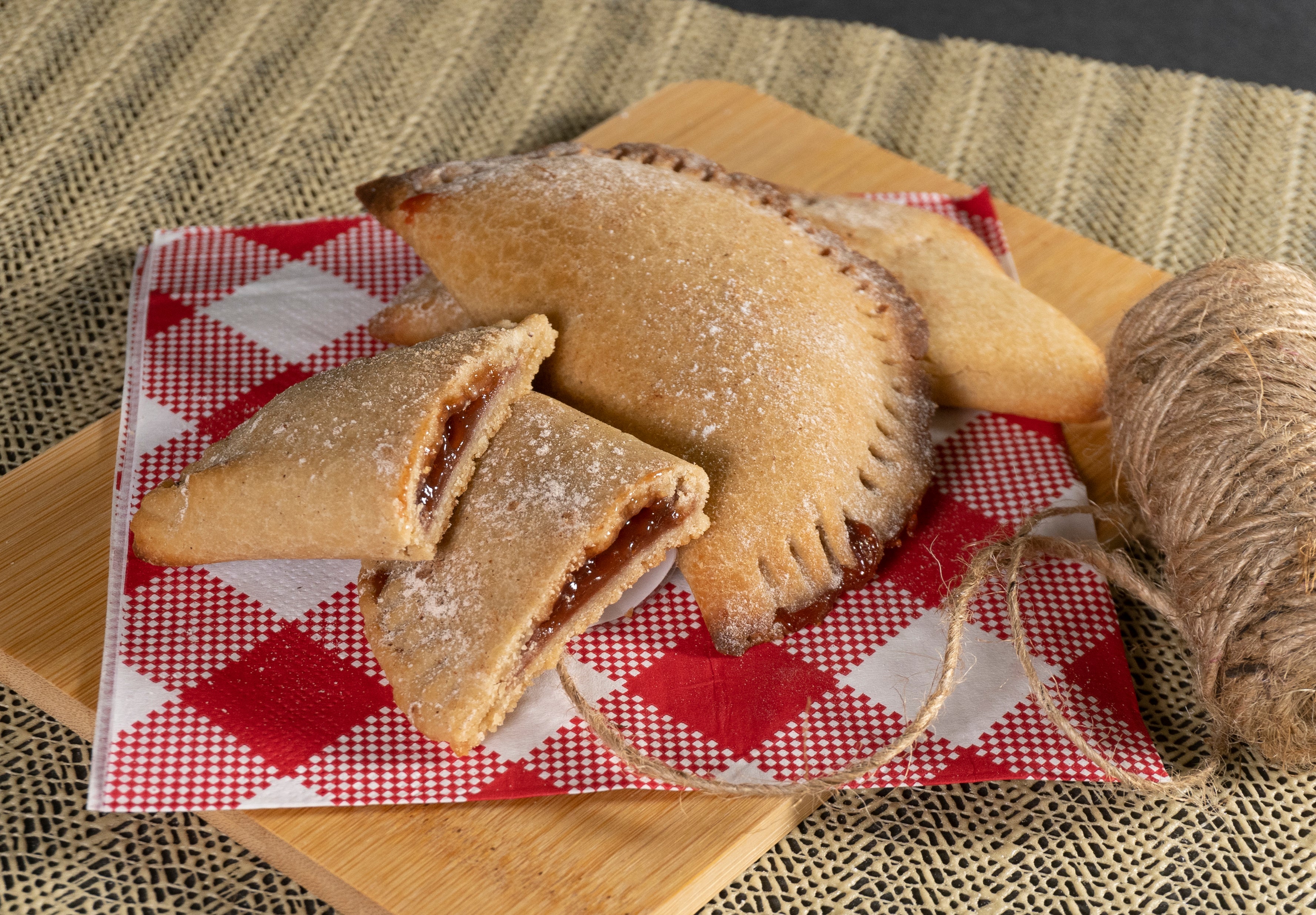 Our strawberry and cream cheese empanadas are hand made and gluten free. They are shipped frozen to maintain shape and freshness. When they are baked they have crispy outer edges and a sweet soft middle filled with our delicious strawberry and cream cheese filling. You can add some powdered sugar and cinnamon once they are baked to have the authentic taste we serve to our local customers! Our empanadas are made with love and care for everyone.