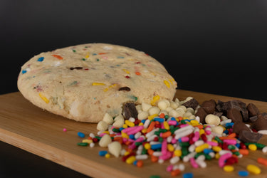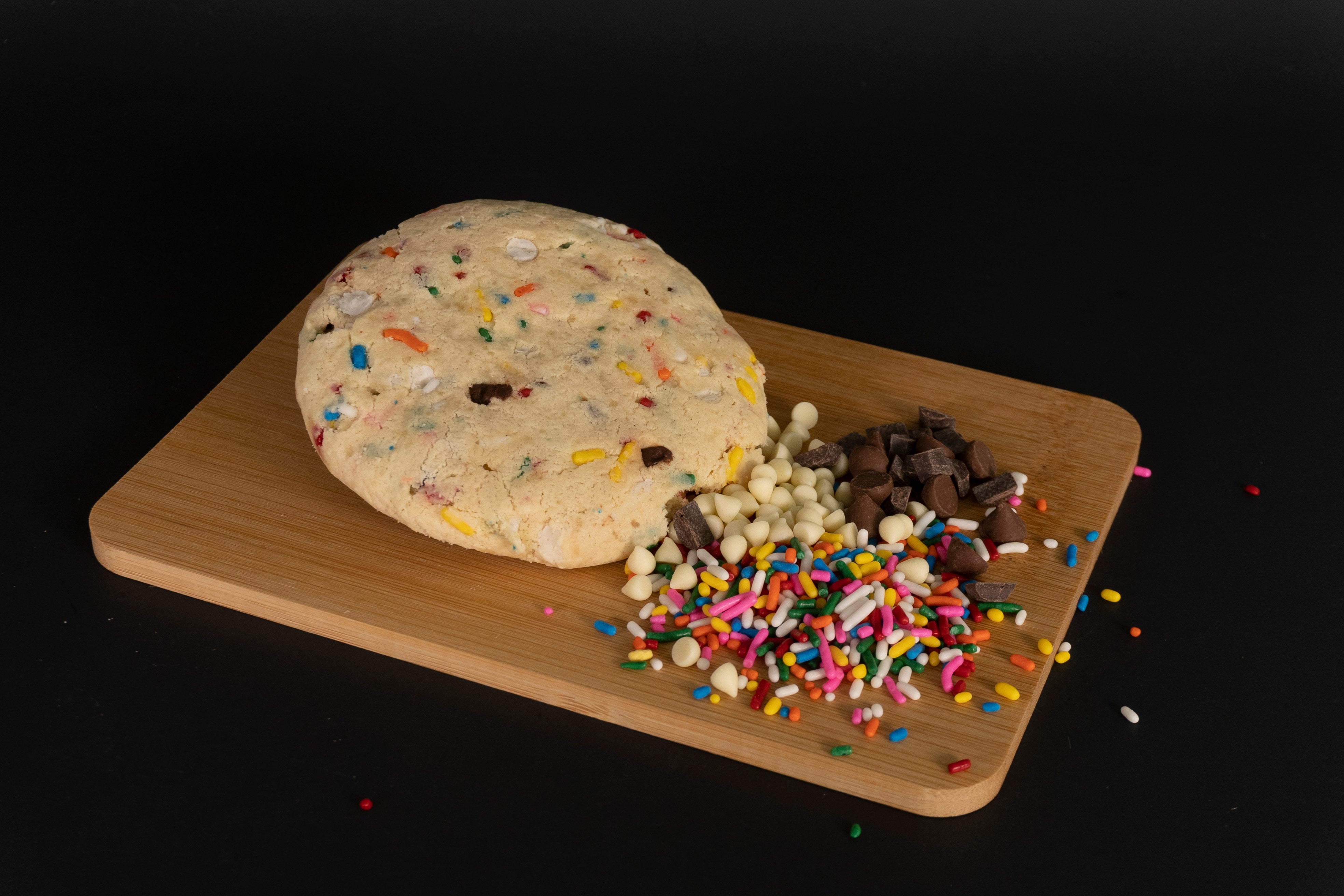 Ingredients: Gluten Not Included and gluten-free mixed flour, granulated sugar, butter, dark chocolate chips, white chocolate chips, eggs, colored chips.